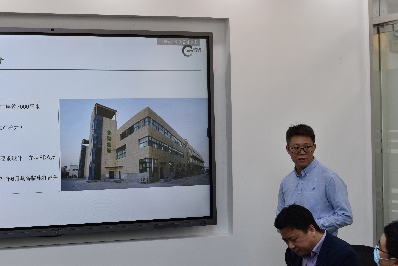 在石女士介绍核心产品CNCT19细胞注射液的新药申报进展汇报环节结束后,彭厂长引领大家视察产业化基地全貌。包括CAR-T细胞制备生产层,检测实验室层、设施设备及仓储层。合源生物华苑科技园产业化基地总投资2.6亿人民币,按照《GMP附录-细胞治疗产品》征求意见稿要求设计,参考FDA及EMAGMP细胞治疗产品的要求。目前正在做厂房和设备/仪器验证,预计2021年6月具备临床样品生产条件。