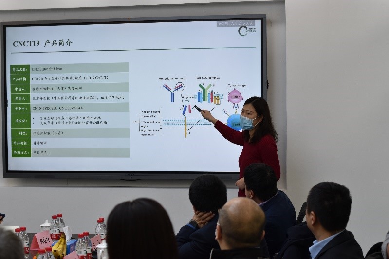 随后,合源生物生产技术部总监石琳女士、产业化基地厂长彭育忠先生先后向在场嘉宾汇报了我司在细胞治疗领域的临床成果和核心产品CNCT19的新药申报进展及细胞疗法的前沿、产业化基地的建设情况与GMP生产许可申报进展、电子化细胞治疗产品全流程追溯系统进展。注册事务部总监王浩先生主持会议。